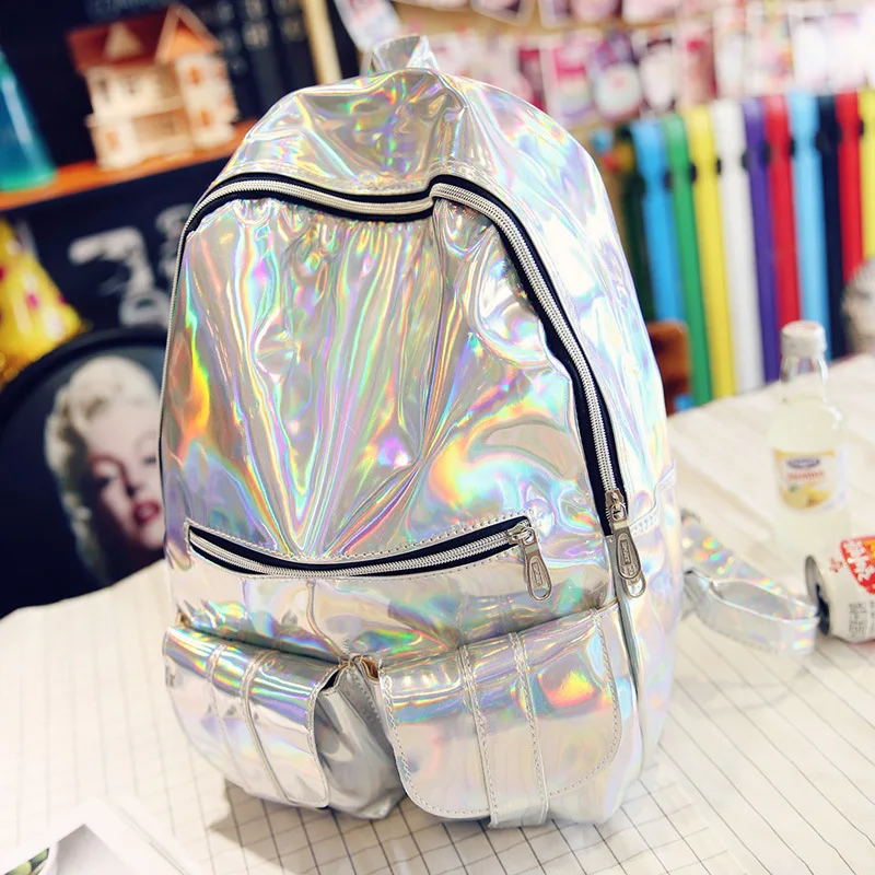 Hot Sale Women Silver Hologram Laser Backpack For Teenage Girls Fashion Shoulder Bags School Bookbags Mochila Masculina Backpack